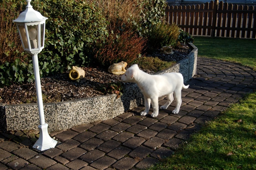 Unsere Anika zeichnet sich durch Ihre liebenswerte Art aus , Ihr reinweisses kräftiges Stockhaar , mit vorzüglichem tiefschwarzen Pigment und wunderbaren Körperbau lassen sie zu einer Schönheit werden .